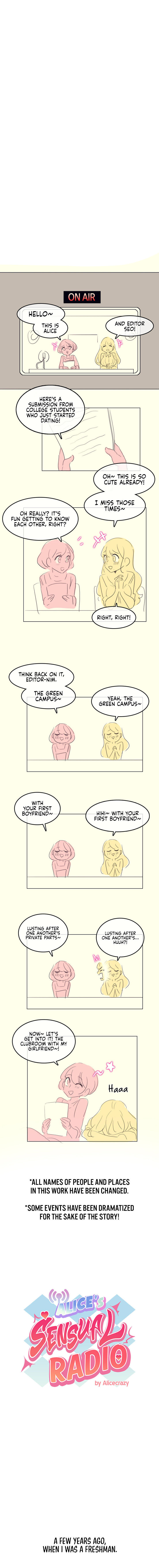 Read Chapter Alice’s Feeling Radio - Chapter 6 online in HD images and with fast loading only at Manhwa Comics. Explore a huge collection of trending and popular manhwa series updated daily for free. Don’t forget to bookmark our site to get instant notifications whenever a new chapter is released on manhwacomics.com. Happy reading!