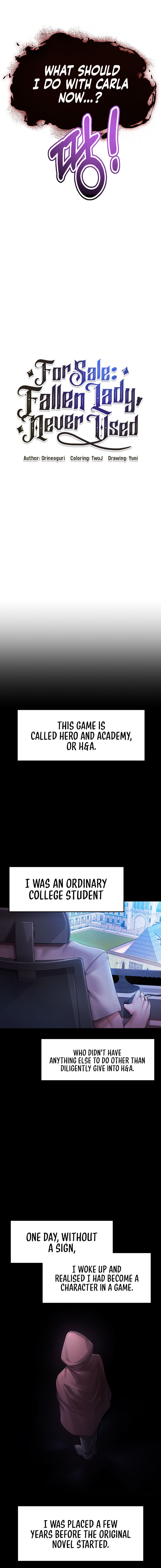 Read Chapter For Sale: Fallen Lady, Never Used - Chapter 1 online in HD images and with fast loading only at Manhwa Comics. Explore a huge collection of trending and popular manhwa series updated daily for free. Don’t forget to bookmark our site to get instant notifications whenever a new chapter is released on manhwacomics.com. Happy reading!