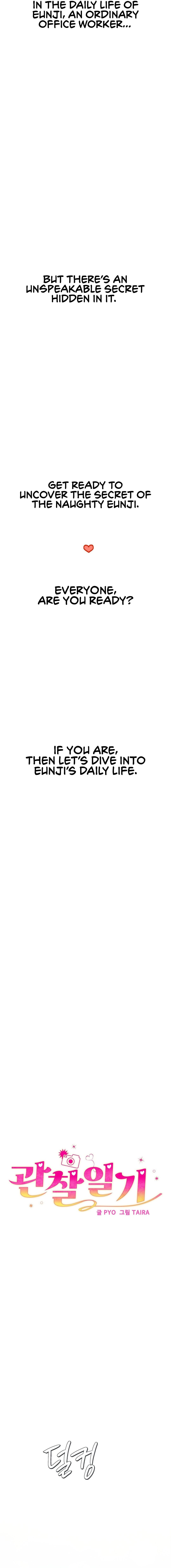 Read Chapter Observation Diary - Chapter 1 online in HD images and with fast loading only at Manhwa Comics. Explore a huge collection of trending and popular manhwa series updated daily for free. Don’t forget to bookmark our site to get instant notifications whenever a new chapter is released on manhwacomics.com. Happy reading!